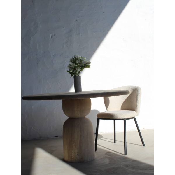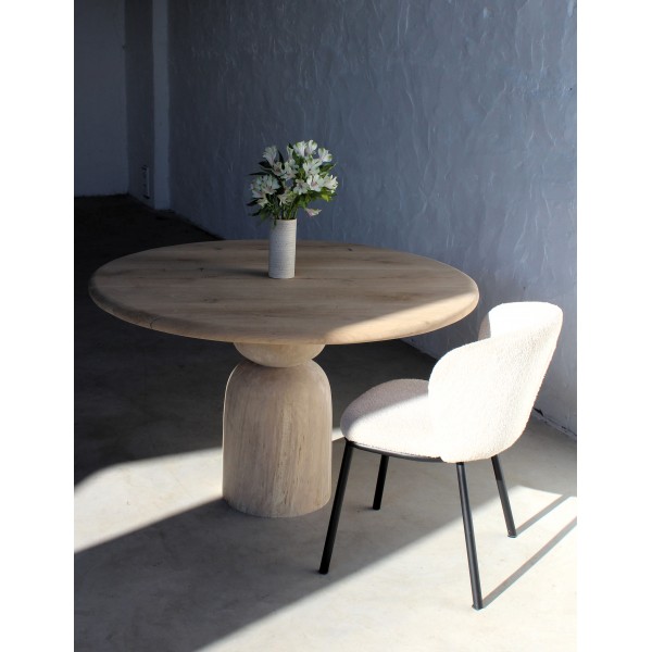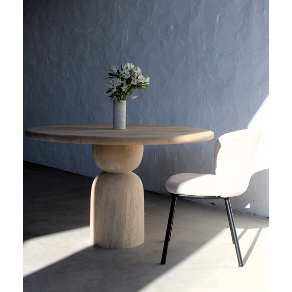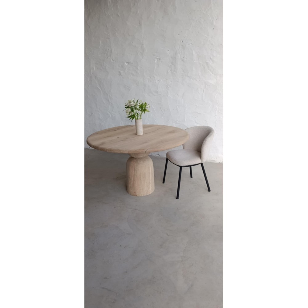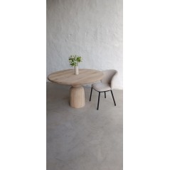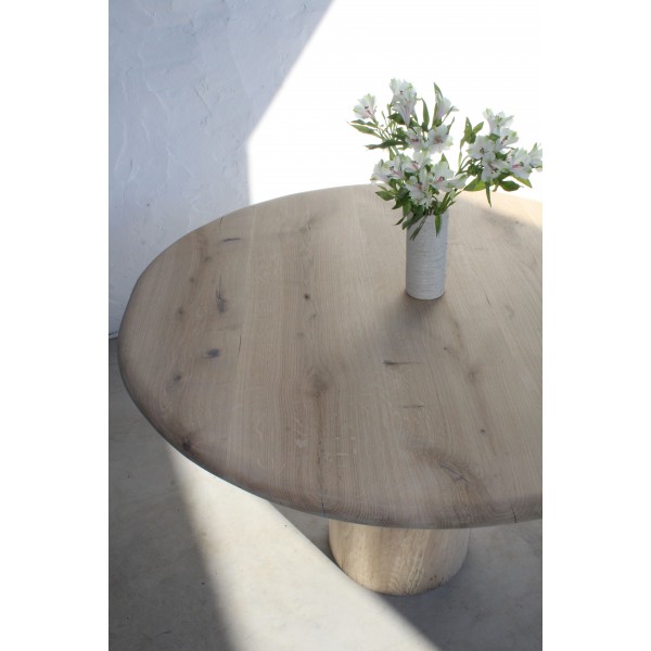 Prezentowany tu stół jest masywny wykonany z drewna dębowego oraz podstawa o wymiarach kul 45cm i 34cm z drewna bukowego.